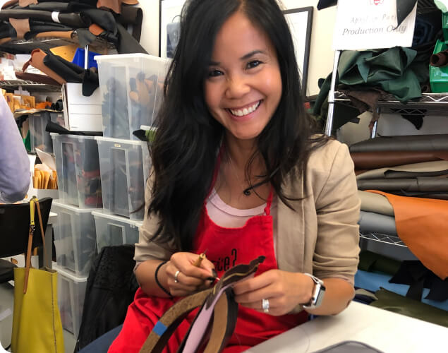After years of dreaming about creating a handbag line, I decided to enroll in a leatherworks school in San Francisco, where I was taught by a Hermes leather artisan. I successfully graduated as a certified leather artisan and that experience led me to collaborate with Italian leather artisans who now handcraft my collection.