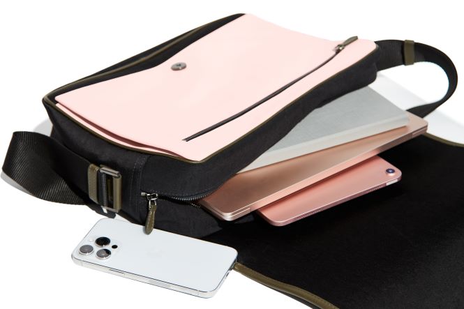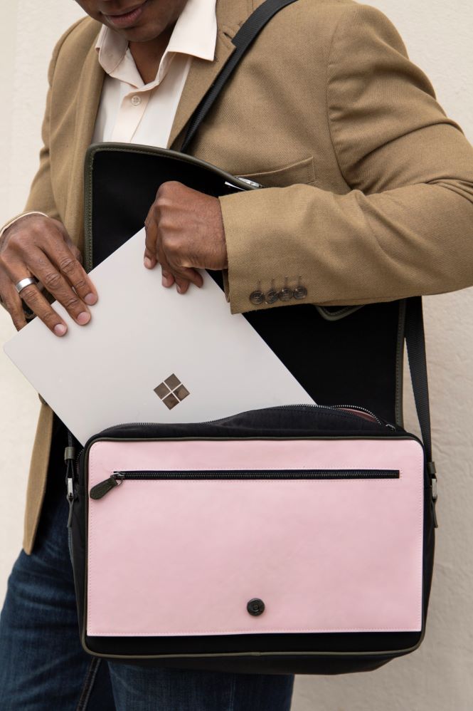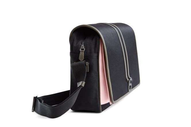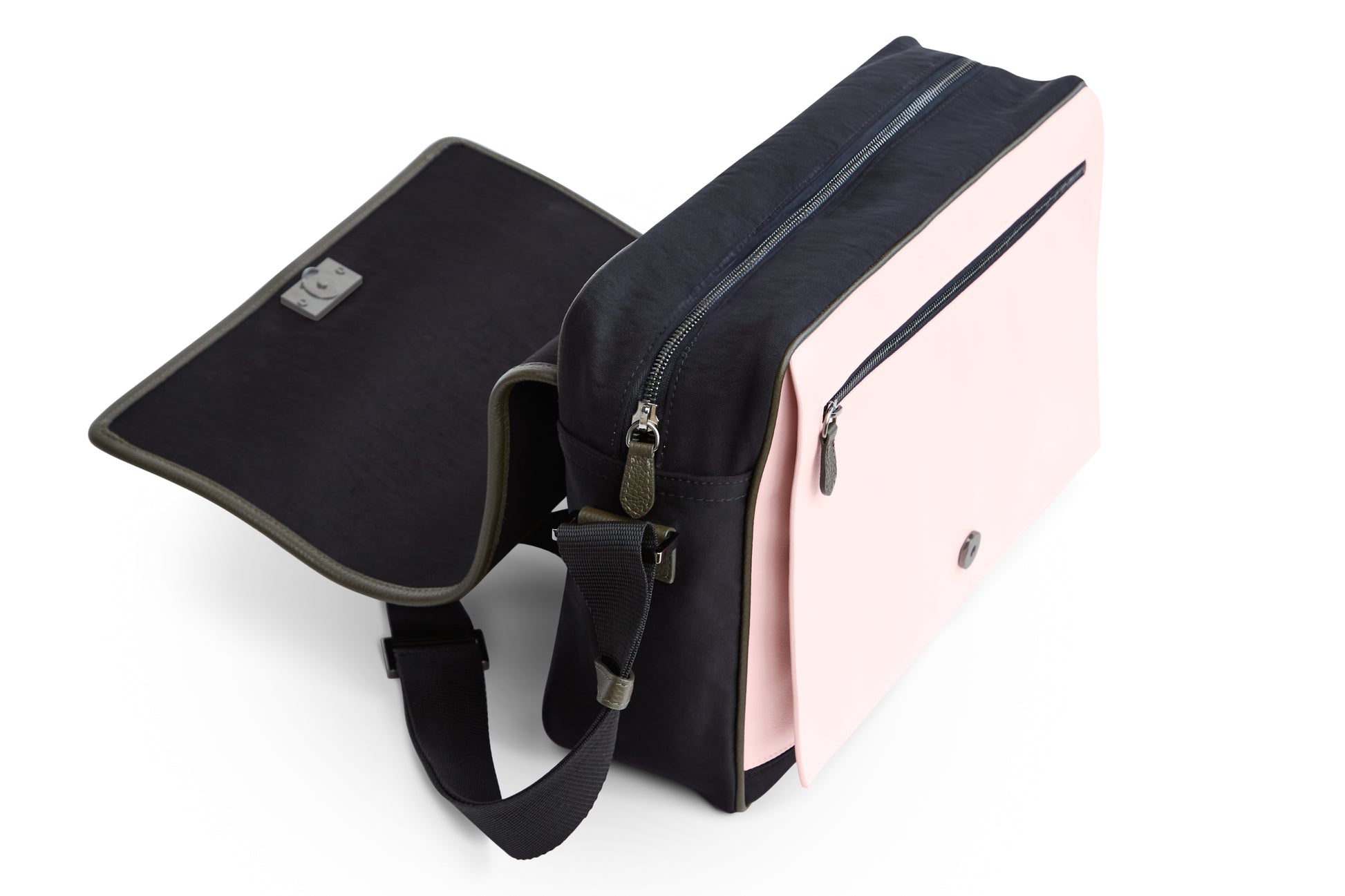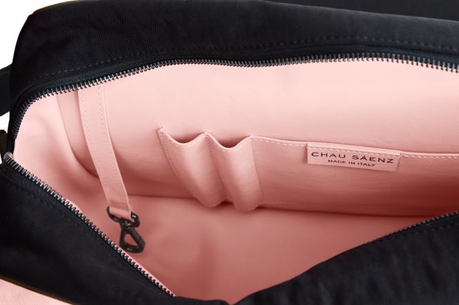 - Nylon exterior with an interior lined in Soft and supple 100% Nappa Italian leather signature pink